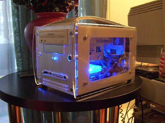 Here are a few shots of this awesome system. Click on any one of the small images to see a larger picture. You can see how compact it is next to a standard mid-tower computer. Contact us if you're ready to have one configured for you.